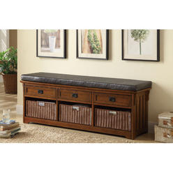 Hampton Wooden Seat Storage Bench With Rattan Baskets And Back