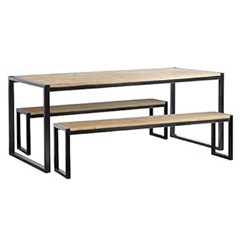 My Furniture Industrial Dining Table And 2 Benches Chenier