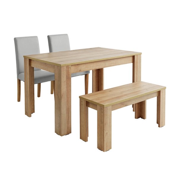 Buy Argos Home Miami Oak Effect Table Bench 2 Grey Chairs