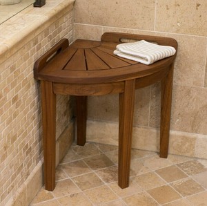 Shower Teak Bench Bathroom Corner Wood Handles Indoor Stool Spa