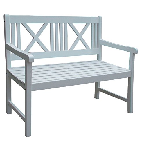 White Elegant Garden Bench Crafted From Lacquered Acacia Wood