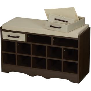 Brown Beige Wooden Shoe Storage Bench Seat Entryway Mud Room