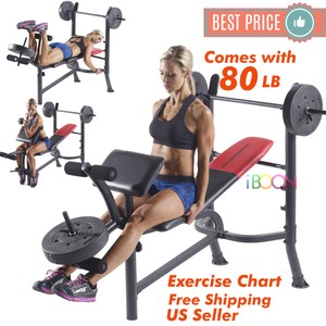 Weight Bench With Weights Set 120 Lb Bar Press Dumbbell Barbell